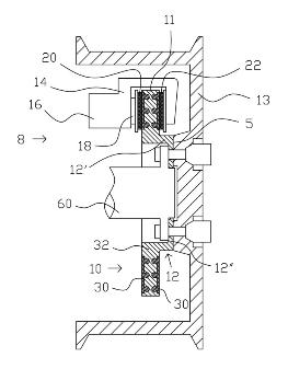 braking. Heat is then quickly conducted away by hat 12 into wheel 13, so that disc 11 shrinks when braking