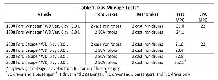 of gas to drive as given in Table 1. We believe that both lighter weight and pad drag reduction contribute