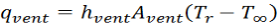 = heat transfer coefficient of convection at ventilation surfaces, J/(hr